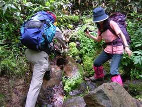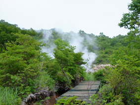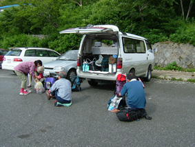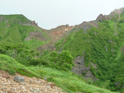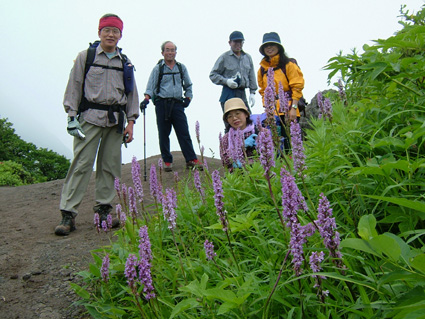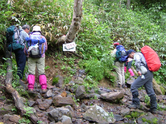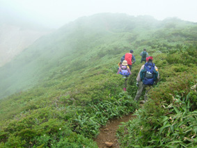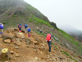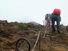 ![]() 峠の茶屋駐車場にて 登山道入り口 TAN・TAKE・FUKU・AN・SIN 後方は朝日岳 ![]() 道標前 SIN・TAN・TAKE・FUKU・AM 朝日岳の稜線 ![]() 茶臼岳と朝日岳のコル 剣が峰(ガレバの荒々しい姿) ![]() 鬼面山(笹が醸し出す山肌) ![]() 朝日岳へ 途中のガレバ AN・FUKU・SIN・TAN・TAKE ![]() 右奥 茶臼岳 クサリ場 ![]() 隠居倉へ 稜線の花と TAN・TAKE・ANSIN (^O^) FUKU ![]() 赤い岩肌の山容(剣が峰) 三斗小屋温泉(源泉の湯煙) ![]() 三斗小屋温泉 TAN・TAKE・FUKU・SIN ダケカンバの登山道 ![]() 延命水にて喉の乾きを潤すメンバー TAKE・FUKU・AN・TAN・SIN 那須ウスユキソウ??(>_<) 無間谷に架かる橋 休憩でゴザル ![]() 那須岳避難小屋 峰の茶屋への登り TAN・AN・FUKU・SIN・TAKE ![]() 峰の茶屋避難小屋 下山後峠の茶屋にて TAN・SIN・TAKE・FUKU・AN 10日PM3時頃から郡山地方は大雨にて道路が寸断 冠水による被害が出始めた SEIの所も浸水 (>_<) 被害が出る が !! (*^_^*) そんな中 早池峰山登山の為 PM7時集合 ANさんだけが遅れる (郡山への道路が渋滞 1区間が通常の時間の5倍係り到着) 幹事のTAKEさんが早池峰山登山の中止を決める(高速道路通行止めや道路冠水の為) と 同時に今日は宴会をしようと提案 皆さん思いも寄らぬ展開に大喜び(特にANさんの喜びは特大・・・^^; ) SEIの事務所は屋根を叩く雨音をBGMにお泊まりコースのチャンチキオケサ6名の参加者が 飲めや○○やで大騒ぎ豊富な飲み物(お酒・ワイン・どぶろく・ビール・焼酎 等)で盛り上がる 終宴は草木も眠る丑三時 誰ともなくシュラフに潜り眠りに付く 翌朝 5:30分起床 宴会の中で決めた那須岳(今回の命名は那須早池峰山)に向かう 皆さんうつろな目に気合いを入れて車に乗り込む 運転は若いお嬢様(男性は二日酔い)SIN殿である 運転は任せなさいと言うだけあり さすがの腕前 流れるように走るワゴン車は一時間半くらいで那須登山口に到着 那須早池峰山の登山開始と成りました 雨の降る中 石段を登り登山口の道標で記念写真 ガスが漂う峰 茶臼岳は雲の中 朝日岳は見え隠れ 時折吹く突風に小石混じりの洗礼を受ける 山は雨にも係わらず登山者が多い 雨具に身を包む人 Tシャツの軽装で登る人等 華やかだ 峰のコルは風が強く 飛ばされそうに成り剣が峰へと進む 右はガレバの急斜面 左は今にも落石が起きそうな岩場 慎重に朝日岳の分岐に向かう クサリ場は頑丈に固定されたクサリの為 歩きやすい 登りきるとコルの分岐 山頂には行かず隠居倉に向かう 途中の道には紫の小さな花が咲いていた 間もなく熊見曽根の分岐に着く 登山者が寒そうに雨具で防寒 食事をしてる姿が印象に残る 私達は休まず分岐を下り稜線に出た 所々崩れた道 落ちれば痛いだろうな〜と独り言 (?_?) 強風に踊る雲間から覗く峰 剣が峰の一角は荒々しく雄々しく雄大に映る 隠居倉のピーク手前に紫の花が群生してた(花の名前教えてください m(_ _)m ) 花の楽園にしばし足を止める 綺麗な花には美男美女と記念写真を撮る 目の前に隠居倉のピーク 賑わいを見せる那須岳も こちらのコースは単独登山者が一人だけ 静かな山あるきになる 雲の中に隠れた流石山〜大倉山〜三倉山を遠目に三斗小屋温泉に向かう 小屋手前の源泉からはモクモクと湯煙が上がり硫黄の臭いが漂う 足早に下る 三斗小屋温泉で温泉に浸かるためである 所が・・・・(>_<)・・・・(;_;)・・・・今までは登山者が休憩して入浴を楽しめる場所として 親しまれた三斗小屋温泉が 休憩入浴お断りの看板 之にはぶったまげた入浴お断りときたもんだ!! 幹事のTAKEさんが小屋に居た人に聞く 入浴をお願いしたいのですが と ・・・ すると味気ない返事 ダメデス 数年前に来た時は登山者で賑わいを魅せていた小屋 宿泊者以外 お風呂も・休憩も・トイレもダメと立て看板 世の中どうなってるのと私達は呆れるやら怒りやらで小屋を後にしました 今後はこのコースはもう来ないと全員の合い言葉になる 沼原の分岐を過ぎると延命清水に着く 怒りを押さえ渇いた喉を潤し清い心でダケカンバの道を進む 那須避難小屋から望む茶臼岳を記念に撮り最後の登り ザレ場の道!! 木々の生い茂る登山道から岩が露出した道へと変わる コルに近づくにつれ風が強く小雨交じりの天候に鳥肌が立つ 寒い 峰の茶屋に入るが 休憩は取らず直ぐに下山 峠の茶屋のテーブルで遅い昼食 冷えたビールでご苦労様と乾杯 温かいラーメンとみそ汁が空腹の体を温める このアンバランスの食事がバランスがとれ何とも微笑ましい光景でした 下山後 大丸温泉露天風呂で長い入浴タイム 風呂上がりのビールで仕上げ 今回の那須早池峰山登山が完結致しました 思いも寄らぬ大宴会 那須登山変更 紫の素敵な花の群生 三斗小屋事件 等 大きな収穫が ありました TAKE幹事 ANさん TANさん FUKUさん SINさん ありがとう また宴会が出来ると良いですね ・・・・・SEI・・・・ 戻 る |