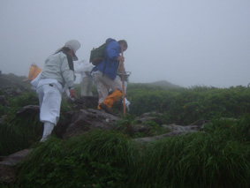 湯殿山の碑 月山を行く