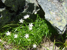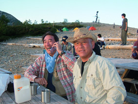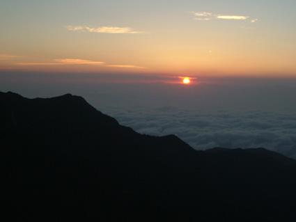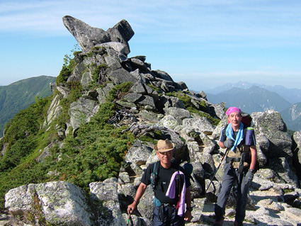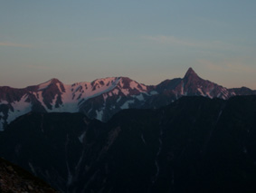 ![]() ![]() 常念岳 前常念岳の稜線 ![]() ![]() ![]() ![]() ![]() ![]() ジャンダルム〜前穂高岳〜奥穂高岳〜唐沢岳〜北穂高岳〜大キレット〜南岳〜中岳〜飛騨乗越〜槍が岳〜東鎌尾根〜西岳〜赤岩岳〜大天井岳 手のマークで拡大 ・・・・・・・・・・・・・・・・・・・・・・・・・・・・・・・・・・・・・・・・・・・・・・・・・・・・・・・・・・・・・・・・・・ ![]() 日の出(常念岳より) ![]() 出発前のSho&SEI 朝焼けの槍 常念岳でSho&TETU ![]() 奇怪な岩の前にてSEI〜SHO ![]() 蝶への道(稜線) ![]() 稜線のガレバ 振り返り常念岳 蝶が岳ヒュッテの前TETU〜岐阜の山遊隊二人〜SHO ![]() 岐阜の山遊隊の皆さんと共に ![]() 蝶が岳ヒュッテ(後方 槍の遠望) 下山前の分岐にて(岐阜の山遊隊の皆さん) ![]() 下山途中(まめうち平)SEI&Sho ![]() 道中のお花さん 二日目の目覚めは3:45 蝶が岳への稜線歩きの為 暑くならないうちにと4:15分には小屋を後にした 常念乗越のガレバは急登 朝一の登りは大変である 日の出を眺めながら ゆっくりと登る 山頂は既に数人の登山者が居た 小屋で頂いた朝食の弁当を熱いみそ汁を作り 360°の展望を追い頂く贅沢は山に来た者にのみ 与えられる祝福の時間であると思う ”感謝の時” m(_ _)m 目の前にある峰は 夢ではなく 写真でもなく スライドでもない まさしく北アルプスの全貌である 朝食を終えた私達は岩峰の急坂を下る 遠くに見える蝶が岳ヒュッテ 蝶槍の勾配は 常念乗越を思わせる傾斜だ 時折吹く微風に汗ばんだ体が心地よい稜線歩き 楽しんで 山を歩く そんな時に流され蝶槍に着いた 途中のお花畑やコメツガの林は 癒しとエネルギーの補給地を演出してくれる優しさがある 蝶槍から蝶が岳そして蝶が岳ヒュッテは直ぐ其処に見える 稜線は小さな石の平地で此処から先は楽に歩けヒュッテまでは40分足らずでした ヒュッテのビールは (~o~) 自販機で冷やされていて冷たく美味しい TETUさんにご馳走になり 美味しさが一段と増した TETUさんご馳走様でした テーブルで休んでいると岐阜の山遊隊の皆さんと意気投合 話が弾む 元気の良い6名のパーテー 稜線歩きでも抜きつ抜かれつでお話や挨拶をしたため おなじみのお顔でした 東北の山に来た時があると聞き 今度来るときは連絡下さい 等と互いに約束 記念写真を撮り下山を私達が先行し別れた・・・・またお会い致しましょうね・・・ 下山は森林歩きである 展望は殆ど無くただひたすら下りるだけ そんな登山道で目を引くのは白い可憐な花 ”オサバグサ” である 山肌全体を白く塗りつぶした様に敷き詰められた花 オサバグサ!! 鈴なりに小さな花が傘をつぼめたように上から下い広がりを持ち付ける花 見事に咲いてる 控え目な花オサバグサが展望のない登山道を彩る 休憩を取らず下山した為 2時間10分で駐車場へ到着 三俣の分岐にて手を会わせ安全に登山を終えた事に感謝!! 8年ぶりの常念岳〜蝶が岳登山に新しいページと出合いが出来たことで 山あるきに教えられる無尽蔵な喜びと感動を憶える 大坪さん山遊隊の皆さんShoさんTETUさん ありがとう ・・・・・・・SEI・・・・・・・ 戻 る |