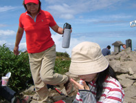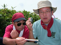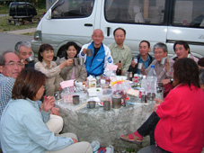 ![]() 荒々しい山容と日本海 ![]() 後方の沢(荒菅沢)&TEKE〜MASA ![]() ![]() ![]() ![]() ![]() 山頂で休憩 ![]() 山頂で記念写真 SEI・Sho・TAKE・HARA・TUKASA・宗形・TAI MASA・SIN・岡部 Joe・石沢・TAN・池上・TAKI ![]() 山頂より笹平 ![]() 下山時 分岐にてSho・TAKE・宗形・Joe 荒菅沢&一輪の花 ![]() ![]() ![]() ![]() ![]() ![]() ![]() 下山後キャンプ場にて大宴会 暗くなっても続くのでした 此処からMASAさんの写真 ↓ ![]() 彼方に見える戸隠山 ![]() ![]() ![]() ![]() ![]() 道中のお花さん Joe幹事の計画でハッカ山苦楽部 8月例会登山に15名が参加 郡山を20日のPM9:00出発 既に合流組のShoさんはキャンプサイトに着きご機嫌に宴会モード 夜中の一時三十分に到着した私達は夜食と共に前夜祭 テントの中は朝方の3:30分まで歓談が続くのでした 眠い目をこすり お早う御座います 5〜6〜7の時間割 幹事のJoeさんと女性の皆さんが 手際よく朝食の準備 参加者は美味しいご飯を頂き予定の時間7に会わせて 登山口に集合 総勢15名が雨飾山へ出発 登山口から少し下り大海川の湿地帯の木道を進む 渓流には岩魚が登山者を気にも止めず 泳ぐ姿 誰かわ解らないが話す??美味しそう晩のおかずに良いね!! 湿地帯を過ぎる いよいよ登りだ滑りやすい道をジグザグに進み ブナの木が目立つ山腹を通過 展望は無いが日射しが森林に遮断され天然の傘をさしてる様だ 下りに差し掛かると荒菅沢に出た 荒菅沢では多くの登山者が休み 沢の空間には雨飾山のピークと布団菱の岸壁が 天に向かい荒々しい表情を醸し出して居た 荒菅沢を渡り尾根に取り付くと急登が始まる 浮き石が多い 滑りやすい道は登山者の行く手に慎重の二文字を植えつける 途中のロープや梯子で渋滞するがこの辺りから展望が開け 私達は遠望の山並みや荒菅沢の一枚岩を心ゆくまで眺めゆっくりと登る 高度を上げ稜線に出ると妙高山や明日登る予定の鉾ヶ岳〜権現岳が目の前に迫る 眼下には日本海が広がり 稜線越しに雨飾山の全貌が飛び込んでくる そのまま進む少し下ると笹平に在る梶山温泉への分岐に出て 展望の良い平地から最後の急登を登ると雨飾山の山頂に着く 山頂は南峰と北峰の二つのピークがあり 私達は北峰の狭い岩場に休憩 冷えたビールに始まりメンバーの持ち寄った食料に舌包みでした 展望は雲に遮られるも白馬大雪渓や戸隠山・妙高山・鉾ヶ岳・権現岳 等を確認出来た 一時間の休憩後 下山 雷の音に急かされるように下りました 下山後 露天風呂や旅館の温泉と二手に分かれ入浴 早い時間から宴会に突入 一泊組の4名も何故か(^-^)帰らず 明日の朝までご一緒にと和気藹々に過ごす 飲めや(歌い・・・酒よを大合唱 (^O^)・・・) 隣のテント組のキャンプフアイヤーに負けじと盛り上がりました 朝帰りのTANさん SINさん 岡部さん 池上さん おつき合いありがとうございました 権現岳組の皆さん 二日目の登山にトライ・・(@_@) 頑張りましょう 22日に続く・・・・SEI・・・ 戻 る |