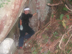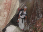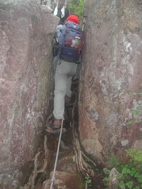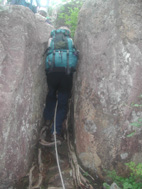 此処からMASAさん提供写真 ![]() 登山口の道標 ![]() 洞窟から出てきた 石沢 宗形 ![]() はさみ岩を通過するのは?? だれだ (*^_^*) ![]() 洞窟を出てきた HARA〜TAKE〜Joe〜TUKASA〜SEI 今日は長野県側から新潟県に移動 鉾ヶ岳登山口に到着 朝の出発が遅れ登山口に着いたのはAM8:30 予定より二時間半の遅れになる リーダーのJoeさんが登山ルートの変更を告げる 予定ルート手前の権現岳までと致します 皆さんリーダーの指示に従いAM8:50に登坂開始 道標の所に着くと なんと登山道が雑草で隠れてるではないですか!! え〜〜これって殆ど登山者が居ないと言うことだよね と 一様に話す ん〜〜でも行きましょう 珍しく先頭を行くSEI 初めから厳しい登りに汗が噴き出る 最初の休憩を白滝の道標が在るところで取る 数人で一杯になる狭い場所で吹き出る汗を拭うメンバー 飲む水の量も半端じゃない TAKEさんの汗はこぼれるように流れ落ちる 小さなバナナの様な実を付けた木 や 灌木の林の中を進む 此処からクサリ&ロープの登りが永遠に続くとは誰も解らない 岩場に張られたロープ 直登に下がるクサリ わずか1104mの山でこれ程までに苦労をしての 登りは皆さん初めてではないかと・・・!! 胎内くぐりを過ぎると 又 ロープが下がる所に出る 其処を登りきると白山権現様が奉られてる大岩の稜線に出た やれやれ (^-^) 見上げると登山道の上部が明るく見える いよいよ山頂か 張り切ってペースを上げる 其処には間もなく山頂の道標が待ちかまえて居ました (>_<) 殆ど視界がない登りとクサリ&ロープの連続 登山者が少ないのが解るような気が致します 山頂は360の展望の中 歓迎してくれたのは数千匹の羽アリで黒い固まりが 避雷針の下でうごめいて居る姿でした リーダーが用意してくれたドライアイスで冷やしたビールを取り出し 皆で乾杯 予定の鉾ヶ岳を眺めての昼食に満足の笑顔がこぼれる 一時間位の休憩後下山 慎重に岩場に張られたロープ&クサリを頼りに無事に登山口に着きました。 山頂からの展望と山の厳しさに感激できた権現岳登山 一人の登山者にも会わない静かな山あるき 素晴らしい新潟県に権現岳ありと伝いたい 帰りには麓の権現荘で汗を流し(入浴料¥310)帰途に付く 三重県から合流したShoさん長い道中ご苦労さんです 来月の穂高岳で又会いましょうね 権現岳で厳しい登りを体験出来た皆さんありがとうございました 二泊三日の全ての取りまとめ Joe幹事さんお世話になりました 素晴らしい例会登山に感謝 ・・・SEI・・・ 戻 る |