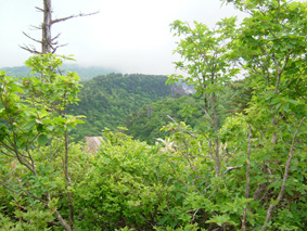 雨上がりの瑞々しい木々 後方に硫黄川 TETU・MASA・KABE