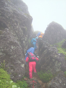 ガレバを下る 途中の大岩