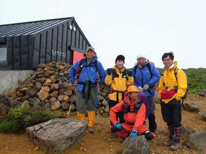 鉄山避難小屋で途中合流の二人
