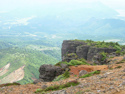 胎内岩上部より裏磐梯方面 胎内岩をくぐるMASA
