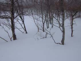 後半はゲレンデ脇の林を攻める灌木林や岳樺〜ブナ林と変化に富んだ斜面