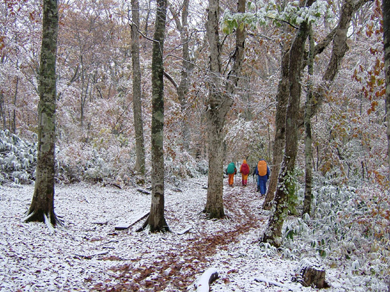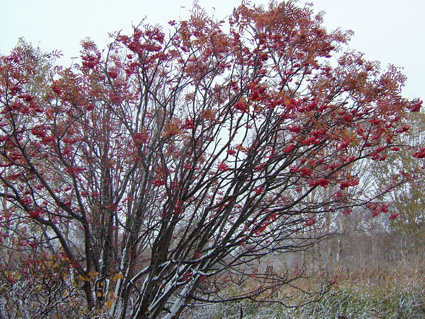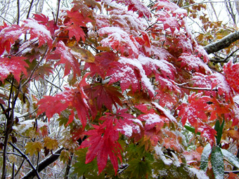 落葉のジュータン(雪化粧の登山道 紅葉と白い妖精)