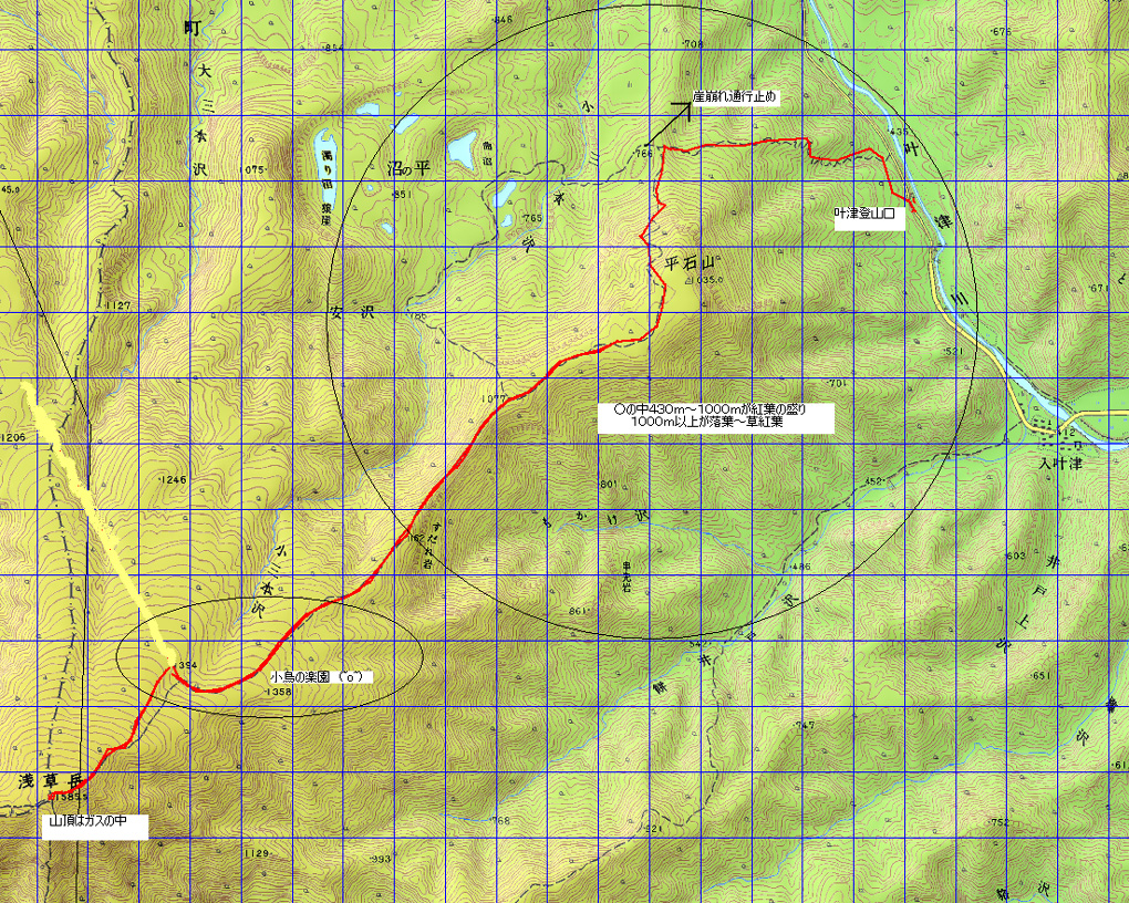 戻 る 登り 入叶津登山口 AM 7:15 〜 沼の平分岐 AM 8:20 〜 避難小屋 AM 10:50 〜 山頂 AM 11:25 山頂写真休憩 10分(寒いのとガスで視界がない為) 下り 山頂 AM 11:35 〜 避難小屋 AM 11:55 〜 (休憩 PM12:40迄) 〜 すだれ岩 PM 1:30〜 沼の平下山道分岐 PM 2:00 〜 登山口 PM 3:30
