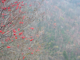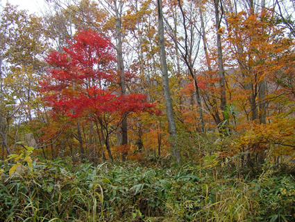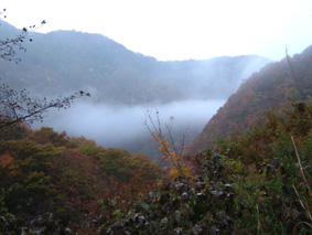 ![]() 移動途中の景色 カラマツの紅葉 晩秋の林道(大峠) ![]() 鮮やかな錦絵 天高く燃えるモミジ 日暮滝 ![]() 顔を出した三倉山 カラマツ林 ![]() ナナカマド 遊歩道の分岐 一里塚の碑 ![]() 登山道の景色(落葉) ![]() 大峠の分岐 ケルン 風避けの窪地で休憩 ![]() 流石山のピーク ![]() ![]() 稜線の道 五葉の泉 ![]() 風とガスの中を大倉山まで到着(寒いのでウイスキーを二盃飲む)此が下りに利きました ![]() ![]() キスゲ小沼 下山路から大峠がうっすらと見えた ![]() 大峠の地蔵さん 流石山方面 三本槍方面 ![]() 下山路から唐松林 あまりにも上品なモミジの赤 ![]() 旭嶽の麓を探索していたら大倉山方面の稜線が現れる 下山路の熊棚(ナナカマドの木が手繰り寄せられて折れてる) (>_<) 下には大きな熊の落とし物がありました!! ![]() 旭嶽の切れ落ちた渓谷の紅葉 帰り道に寄ったラーメン店(マジに美味しいです) 那須岳に連なる流石山〜大倉山に天候が悪いと言う予報の中出かけました 登山口までの道中の紅葉は見事な彩りで途中下車が何度となくあり写真に納める 登山口に着くと一台の車が駐車 こんなに天候が悪い情報の中ものずきが居るもんだと独り言・・・自分は (笑) 登山口を進むとすぐに鏡沼に至る道標と木道の階段が現れた 登山道はゴロ石を並べたような道が続く 木々は落葉した木と晩秋に彩りを残してくれてる木とが五分五分位に見られる 登るに連れてガスが濃くなり視界が悪くなる 大峠の分岐に着くと白一色の画面に変わる 数十メートルの視界で 殆どが足元の景色のみを楽しみながら流石山に登る 風が強くなる ガスが霧雨状態になり体に体当たり合羽がバタバタと音をたてる ザックのひもが靡き顔に当たり痛い 足元を見て黙々と登る 上の方に人の気配 見上げると単独の登山者が下りてきた たぶん駐車されてた車の方だろう、寒いですね・・・と声をかけると・・・ 何も見えないので流石山のピークまで行き帰って来ましたと話される 何処までと聞かれて 私は大倉山までの予定ですと言うと午後は天候が崩れる様なので 気を付けて下さい//そんな会話を交わし別れた!! 稜線に近づくに連れて風が強くなる 顔が冷たい 頬がこわばるのが解る 流石の山頂近くで休憩をした 何故か行動食を頬張ると顎が痛い寒さのせいだろう ピークを過ぎてもガスと風の攻撃は止まない 遠望は無く足元の笹が靡き風が語りかける 「こんなに寒い日に何が良くて来たんだい」とでも言ってるのか? 下山していった方の気持ちが分かる稜線歩きになる 途中に在る五葉の泉とキスゲ小沼だけが展望に加わり視線を落とすことが出来た 後はウグイスらしき小鳥が数羽 私の前で飛び回り遊んでくれた 展望のない一人の山歩きには仲間は何でも良い(熊と蛇はお断り)・・・(^_-) 大倉山に着き窪地で休憩をする 何とか風を遮る事が出来た 行動食を食べて昆布のお供と来ればお決まりはアルコールが付いてくるSEI ストレートのウイスキーを二盃飲み体の心から暖める 旨い・・・ん〜 これだから止められない なんだか解らない独り言 ピークの一時でした。 下山はただただ歩くだけ 何も見えない稜線 横殴りの風 無心に歩く事が出来る時 登山に欲しい時間・・それは無心に成れる時・・・SEI (四季一年を通し 雨の日も雪の日も晴天の日も歩くと必ず無心に成れる時間が在る) 大峠を越して石のゴロ道に出てすぐのナナカマドの木を見上げると熊棚が在り 上部の枝が数本折られて一カ所に集められてる 小さな熊棚だが間違いなくこの周辺には熊が出ている証拠です 道には大きな熊の落とし物がナナカマドの実の残骸と共に在りました。・・・回りを見渡す 登山口に着き時間を見ると未だ11:50分 このまま帰るのはもったいないと 旭嶽の麓の紅葉狩りに道草と洒落込む 荒れた林道を登ると奥に広いスペースが在りました そこから見る旭嶽の切れ落ちた岸壁と渓谷に張り付く紅葉は凄いの一言! ここまで来る人はたぶん居ないのかな〜と渓谷の紅葉に見とれました 今年最後の紅葉登山に成るのかな・・・SEI 戻 る |