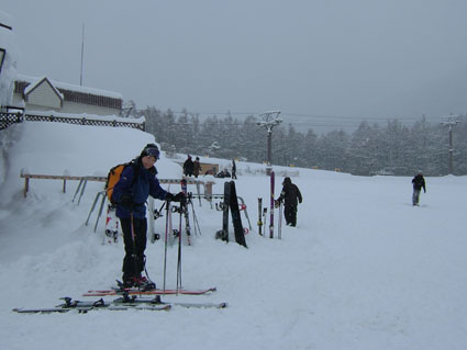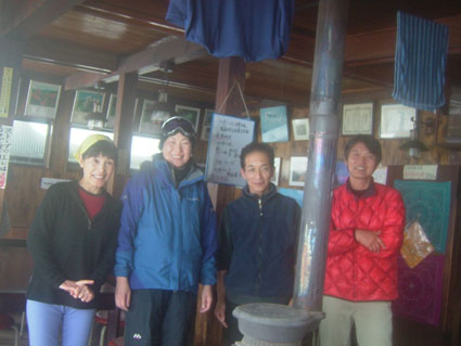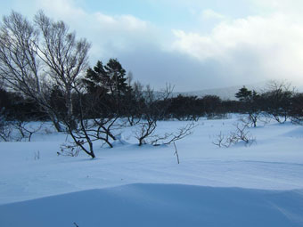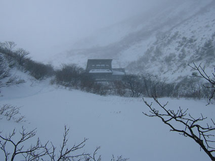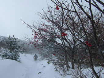 ![]() 安達太良スキー場よりシールを付けて出発(ごんぞうさん) 道 標 ![]() 新雪を踏みしめ登る 新しい?道標 ![]() 登山道は踏み固められてる 岳樺の体操(ん〜見えないかな!) ![]() 途中で会ったHさん(右の方で〜す) 勢至平の分岐 ![]() ナナカマドの実が木々を彩る ようやく見えた(くろがね小屋) ![]() くろがね小屋にて(Mさん ・ ごんぞうさん ・ 管理人の佐藤さん ・ ご免なさい名前?) ヘルメットのSEI ![]() 小屋越しに鉄山の方向を眺める 下山前にハイポーズ(ごんぞうさん) ![]() 小屋の手前にスキーをデポ 勢至平より中央に篭山 ![]() 奥に安達太良山の稜線が微かに見える 白い大地にカラマツ林が整列 今シーズン初めて山スキーにて安達太良山に来ました 天気予報は曇り ゴンドラが動いてれば山頂に向けてラッセルの予定でしたがゴンドラは運休 勢至平経由でくろがね小屋までにルートを変更して出発する。 新雪は50〜60cmくらいでトレースを外れるとラッセルがきつい これでは山頂方面はかなり手こずるだろう! ゴンドラが動いていたとしても山頂へのコースは半分も進めないだろうと推測できた くろがね小屋までの登山者が多いのか踏み跡は大きくVの字に口をあけて道が出来ている 木々には昨日からの雪が枝に積もり重そうにしだれる・・・・重くもないか? ウエアーの胸元を汗を発散させるために大きく開けてる ごんぞうさん とSEIに風が悪さをする ヒューと音をたてて木々を揺する 大きな丸い雪の固まりが落ちてくる くびったまから雪が入る ウヘーつめてー 容赦ない攻撃 面白〜いと訳の解らない身振り 子供が雪遊びをしてる様だ 風と雪と登山道に優しく歓迎される 白い妖精の季節!! 1250m地点を過ぎると平坦な歩きに変わる 遠望は霞見えない時折吹く強風に雪が舞いあがる 忍者が隠れ技を出したのかと思うように前方を行く ごんぞうさんが雪面より消えた 勢至平の分岐手前でHさんに声をかけられる いつもHPを見ていますδΔθωζちんぷんかんのSEI お話をすると游山のメンバーSUMIさんの知り合いで在ることが判明(ここで使う言葉かな!!ん〜ごめんちゃい)致しましたm(_ _)mです くねるコースを進むと荒竜岩の下方にくろがね小屋が姿を現した。 前方の鉄山の谷は白く視界が閉ざされて何も見えない 足元の不安定な雪面を下り小屋に入る 小屋の引き戸を開けて入ると懐かしい(少し大げさ2年ぶり)空間が飛び込む 途中で先行したMさんや管理人の笑顔が!温かい雰囲気が漂うくろがね小屋に疲れが吹っ飛ぶのでした。 小屋ではいつもの山談義に終始 想い出話や小屋でカップル誕生話で盛り上がりました。 満腹のお腹になり下山前には檜の浴槽で温泉に浸かる 湯加減最高 雪景色最高の窓辺にふわふわと舞う雪・・・ 午後の日差しが雲間から覗く景色に促されてくろがね小屋を後にしました。 緩斜面を気持ちよく滑り下ると遠望には阿武隈山系の山々が白く峰を連ねて落ち日に輝き!! 今日のドラマの集結を宣言したかのようでした 今日 出会えた皆さんに感謝いたします ごんぞうさんお疲れさまでした ・・・SEI・・・ 戻 る |