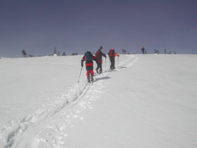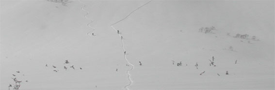![]() 緩斜面の雪原を行く しばらくぶりのShoさん ![]() ダケカンバ 山の神 稜線にて休憩 ![]() 栂池公園を眼下に(雲の中は白馬岳) 山の神尾根 ![]() 天狗原組と連絡をとるSEI ![]() Ojyou〜Sho〜AN 乗鞍の斜面(シュプールが!!) ![]() 天狗原 天狗原の祠(Sho〜AN〜Ojyou〜MASA) ![]() 大斜面を滑るスキーヤー ![]() 成城大学小屋前にて昼食 元気なご年輩のスノーシューツアー 12日は山スキー 栂池公園〜天狗原までの予定 天候は良くない 小雪舞う1日に成りそうだ!! リフトを乗り継ぎ終点まで行くゲレンデを横切りコースの取り付きへ その時・・滑降禁止区域のロープを無視して滑ってきたボーダーがMASAさんへ激突 もんどり打って飛ばされた 大丈夫かとメンバーが気遣うがボーダーはそのまま立ち去って行く!! ”唖然とする私達を横目に常識はずれのボーダーは居ない” MASAさんは大丈夫と登りはじめた トレースが雪面に多く踏み固められたコースは歩きやすい 風も無く汗ばむ位だ 栂池山荘を見下ろし時折吹く強風に震いながら美味しいビールを頂きました 天狗原を目指して登るメンバーは11:50分頃まもなく着きますと電話にて確認できた 天狗原は風が強く15分ぐらいの休憩で下山〜成城大学小屋前にて昼食を取る 大休憩後 ANさんの提案にて沢下りをする(Sho・AN・Ojyou・MASA)さんの順番にて滑降 ※ GPS軌道にて沢を紹介して在ります) 素晴らしい沢をANさんが教えてくれたとメンバーが感激Shoさんは再挑戦をすると誓う!! 早めの下山の私達は天狗原組を迎えたのは御宿でした お疲れさまでした 二日目も感激の栂池スキーツアーと成り有難うございました ボーダーの皆さん お互いに怪我をしないように楽しみましょうね・・宜しく (^_-) 明日は最終日 早く寝て八方尾根の展望とゲレンデを楽しみましょう MASAさんShoさんANさんOjyouさんMihorinさんHirorinさん 宜しくね・・・SEI 戻 る |
