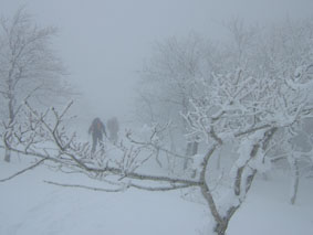 稜線に出るが風と数メートルの視界 展望無し・・・・・山頂手前で此処までにしようと