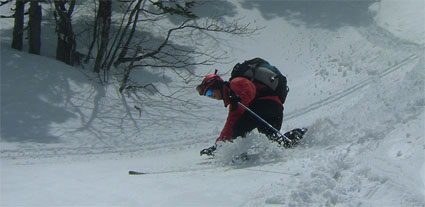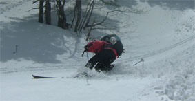たけさんが続く大きなスケールのダイナミックな滑り テレマークの踊るような姿が
