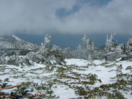 木々に凍り付くエビの尻尾 まだまだ山頂は厳冬期の様相が見られる