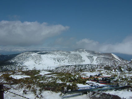 山頂に着くと土の黒い色が目に飛び込んできた 今までの白い登りから一転