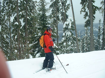 林間の緩斜面にて休憩 SEI Whistler 山頂方角