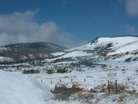 前日の夜に2〜3cmの積雪があり一面真っ白に雪化粧した吾妻連峰