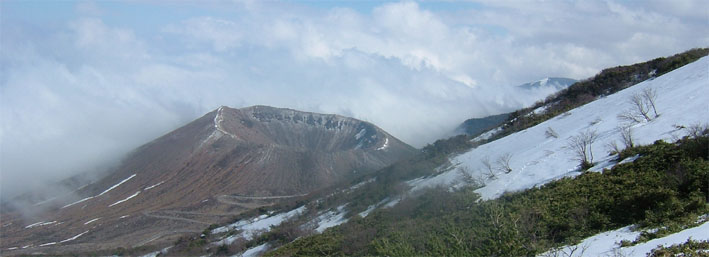 一切経山の中腹からは噴煙が上りゆらゆらと 硫黄の臭いが鼻を突く