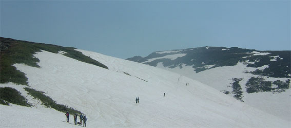 姥ヶ岳には行かないでショートカット大雪渓をトラバースして牛首からの急坂を上る