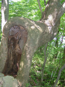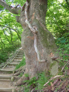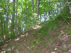 四阿遊歩道から上がり、ロープを超え山道を登ると原生林が現れる