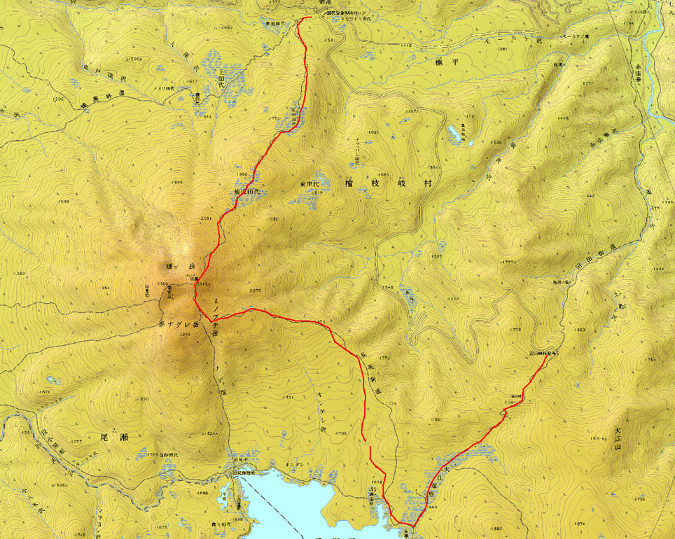御池登山口 AM 6:15 〜 広沢田代 AM 7:36 〜 熊沢田代 AM 8:50 〜 山頂 AM 10:00〜 休憩 (一時間) 〜 11:00迄 〜 ミノブチ岳 AN 11:35 〜 尾瀬沼分岐 PM 1:50 〜 沼山峠 PM 2:40