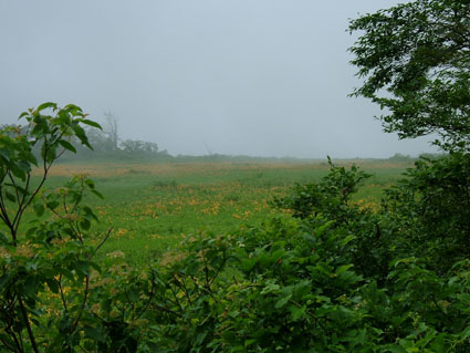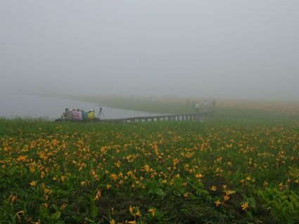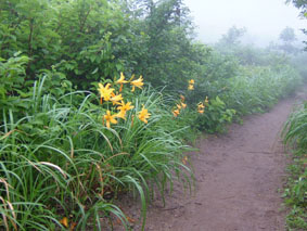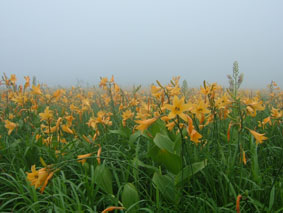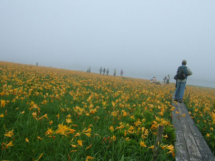 ![]() 雄子沢登山道 大きな図体 ![]() 間もなく休憩舎 分岐の道標 雄国沼休憩舎 ![]() 遠望の景色 ハイキング路のニッコウキスゲ サクランボ ![]() 可憐な一輪 ![]() 案内板 ![]() 大湿原に咲くニッコウキスゲ ![]() 沼の木道に寄り添うハイカー ニッコウキスゲの軍団 ![]() 埋め尽くされた木道 鮮やかな黄色 ![]() 案内板 ん〜〜〜綺麗 」平日にも関わらず多くのハイカーが (*^_^*) 長〜〜〜い階段 峠の駐車場 ![]() 峠の展望台 ハイキング路より沼の辺 ![]() 川上の石窯 現在の離屋の風景 ニッコウキスゲを見るために雄国沼に急遽足を運ぶ・・(>_<) ぎっくり腰で不自由な体を治すには荒療治しかないと限られた時間で沼を往復する事により整体を!! 馬鹿なことを考えるSEI・・・笑 AM11:00に雄子沢登山口に着き早々GO−と駆け上る 雄国沼休憩舎までは3.2km12:00に休憩舎に着きハイキングコースの沼を半回する道に辿る 砂利道の遊歩道を金沢峠へと進み途中から遊歩道に下りる 遊歩道には数輪のニッコウキスゲが咲いていた 沼に在る木道に着くと大勢のハイカーがざわめいて居た 黄色に引かれた花のジュータンに 歓喜の雄叫びで在りました 望遠レンズを覗き込む人 携帯電話でカシャリ 記念写真のポーズと それぞれの姿がざわめきの波に揺れて霞む湖畔に彷徨っていた!! ニッコウキスゲの盛りは既に過ぎて今週が最後と感じる様にポツリポツリと湿原に落ちている。 木道の休憩場所でおにぎりをパクリと2個&お茶で約10分の休憩 後は休まず駆け下りる、登山口にはPM1:45到着した 川上の離屋に回りダッチオーブンの吊り金具を取り付けた 火入れの為に石窯の点検をする 今日の火入れ式が天候の関係で延期になり まだ活躍が出来ない石窯「少しの辛抱」に労をねぎらう! 残り少ないニッコウキスゲの花盛りの巻き・・・終わり・・・SEI 戻 る |