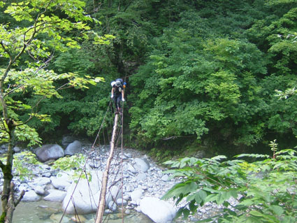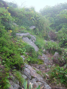 ![]() 登山道道標 吊り橋を渡る 分岐へ ![]() ボランティアによる登山道の刈り払い(休憩のメンバー) どんよりと雲間に浮かぶピーク ![]() 絶不調のSEIが休憩 美味しそう? 1239mピークの大岩 山頂への辿るニセピーク(なかなか着かない) ![]() 角楢小屋(山さん) 刈り払いの済んだ登山道 山さんご苦労様でした(山頂から下り刈り払いをする山さん) ![]() 山頂で休むSEI 山頂の様子(誰もいない) ![]() 山頂直下の登山道 雷の被害を受けた巨木 ? 吊り橋のSEI 丸太橋を渡る ![]() ![]() 角楢小屋(刈り払いのメンバーが夜の食事の準備) ![]() ブナ林 キャンプ場のネジレバナ ![]() 豪華食卓(焼肉・サザエ・牛タンなど) 白い森オートキャンプ場 キャンプ場の前を流れる荒川 三時起きで山形県小国町に在る登山口から祝瓶山へ登る 荒川に架かる吊り橋を渡り分岐へ 分岐からは急坂の連続になる 沢を流れる水の音を聞きながら滑りやすい山肌を進む 花の季節は過ぎたのか花も少なく感じられた 曇り空で日差しは遮られ歩きやすい しかし絶不調のSEI黒い顔が青白い?? 十分休んで一休みと休みが多い (>_<) しかしビールは旨い不思議だ!! 一時間ほど登ると登山道を刈り払いしてる山さんのメンバーが休憩していた 重い刈り払い機を担ぎ上げて登山道を安全に登れるように整備して頂くメンバーに 改めて感謝致します 「有り難うございます ご苦労様です m(_ _)m 」 体調不十分のSEI足取りが重い 蒸し暑く汗がしたたり落ちる 1239mのピークに着くと山頂までは直ぐそこである 休憩してると山頂方面から がやがやと大勢の声が聞こえてきた しばらく登ると中学生の団体とすれ違う 元気がいい スニーカーに運動着で登って来たようだ 切れの良い挨拶に元気を頂きました 後に続き8名位??の登山メンバーさんが下りてきた 中に東北MLのメンバーさんが居たようである (^O^) ど〜もでした!! 山頂まで直ぐそこの場所で刈り払いをしてる山さんに会う 重いザック(燃料・他が入ってると思われる)を背負い機械を操る姿は逞しく精悍に見える SEIですと名乗り暫し話をさせて頂きました そこで私たちの後を登って来る親子三人さんが 東北MLのメンバーであると山さんの話で解りました。 山頂に着くと急に雨が降り出した 長居は無用と ソーセージをパクリとほおばりビールで乾杯 記念写真もそこそこに下山 山頂をあとにする 何も見えない山頂と稜線歩き それでも満足度は何時もと変わらない不思議な山の世界 何時の時期も何時の山も新しい発見がある 感じることが大小に関わらず又訪れたい素晴らしい世界!! 山さん始め多くのボランティアの活動や子供達の溢れるエネルギーの新鮮さなど・・・など 下山は雨の中 数匹の長物が登山道に現れる ウヒョーと後ずさり (>_<) そんなこんなで分岐に着き角楢小屋に向かう 疲れた体(不調のSEI)に小屋までの道のりは長〜い 吊り橋 丸太橋と渡り角楢小屋に着いた 小屋では夕食の準備がされていました 手際よく女性の方が動く姿があり 隣に居た渓流釣りから帰ってきた方のビグを拝見すると 30cm位在る大物のイワナが数匹入って居るのを見てビックリ・・・・凄い 小屋の脇にザックを置き渓流に釣りに出かける が 成果なし 腕の違いを感じることが出来た 貴重な体験でした 「餌を頂 有り難うございました」 角楢小屋を後にして白い森キャンプ場に着く 雨の降る中テン泊の準備 キャンプ場の管理人が優しい方で いろいろとお世話になりました 美味しい牛タンやサザエの壺焼きごちそうさまでした 東北の地は人柄が良い 優しい人が多い そんな出会いを有り難うございました。 「山さん ボランティアの皆さん 東北MLの皆さん 学生さん 有り難う」 ・・・・SEI・・・・ 戻 る |