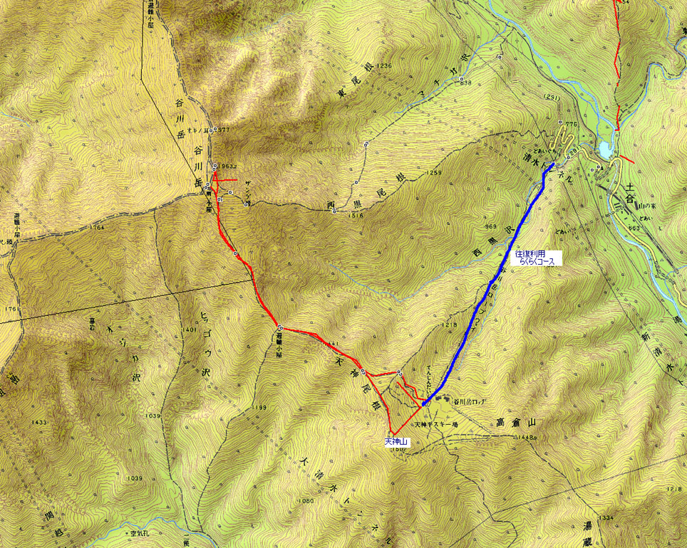 天神山リフト終点10:00〜分岐10:10〜熊穴沢避難小屋10:30〜肩の小屋12:25〜山頂12:40〜休憩13:10 山頂13:10〜熊穴沢小屋14:07〜ロープウェイ駅14:40〜土合口駐車場