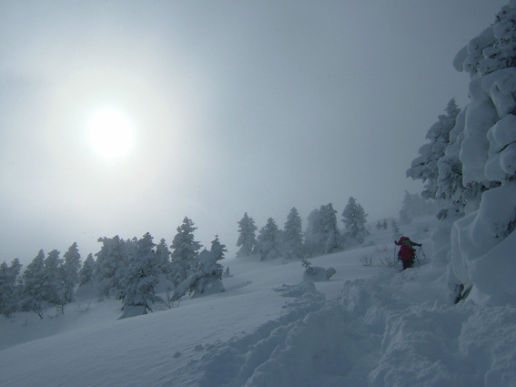 ![]() ラッセルが大変な登り ![]() 誰も歩かない新雪を行く ごんちゃん ![]() 山頂のごんちゃん 途中合流したボーダーと仙台の山家さん ![]() 山頂のエビの尻尾 SEI寒いです ![]() ゲレンデTOPに下山 ![]() ![]() ![]() ![]() ツェルトにて休憩(鍋焼きうどん&ホットワイン) 後烏帽子岳に入るため 烏帽子スキー場に着くがスキー場のリフトが未だ動いていない あと20分位で全てのリフトが動くとアナウンスされる リフトを2本乗りゲレンデTOPに着いた AM9:30分 準備をして誰も歩いていない雪原を歩くラッセルの深さは50cm位 雪がサラサラで歩きやすく助かる 歩き始めて1時間くらいしたときに地元の山家さん3名とボーダー2名と合流しラッセルを交代しながら進む 太陽は殆どでない!風が弱いため雪は舞い上がらない視界は数十mありそれなりの景色を楽しむことが出来た 登り2時間30分弱のコースタイム 雪の量からするとまあまあのタイムか なんだか解らないが一人よがりとも取れる 山頂は風が強く長居は無用だ 指の先が痛い シールを外し下山の準備 帰るべよ〜と下る パフパフの雪を胸まで抱きスキーが気持ちよく走る 今年の最高の雪質だ〜気持ち良い〜ホーホー!! 写真が無いのが残念だ(ごんちゃん転倒のため写真撮れず・・・・(>_<) ) ゲレンデまで下りてツリーの陰でランチタイム 鍋焼きうどん&ホットワインで今日の行程を〆切ました。 仙台の山家さん・若者のボーダーさん・ごんちゃん有り難うございました ・・・・SEI・・・・ 戻 る |
