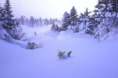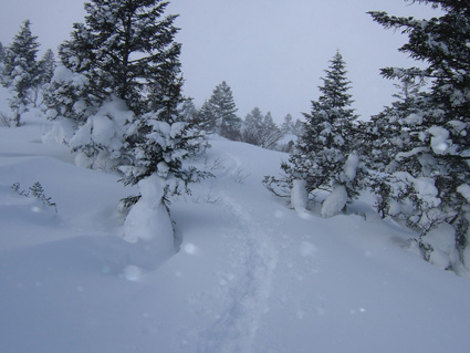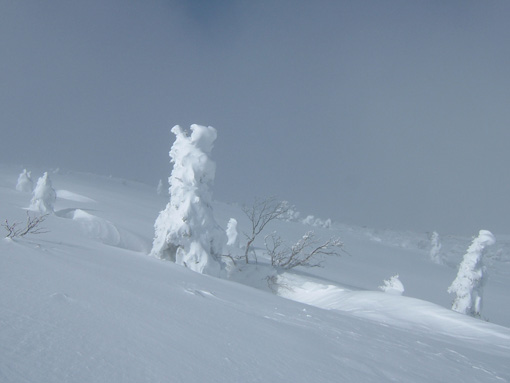 天候(雪〜ホワイトアウト〜時々日差し) 山スキー