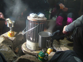 ![]() 瞬時の日差しを逃さずモンスターを写真に収める ![]() ゲレンデTOPより進む キャタピラーの雪上車 ![]() 大きくなり始めたモンスター ![]() 刈田神社は氷の彫刻 ![]() 避難小屋の中でごんちゃん・エンタシスさん・SEI ストーブは有り難い(上に有るアルミホイルは鶏肉です) ![]() ごんちゃん&エンタシスさん エンタシスさんから届きました写真を追加UPしました ↓ ![]() 刈田岳避難小屋の中で ![]() 雪景色 下山前 ![]() 下山予定コースは吹き溜まりが雪庇になり進めず引き返す(ホワイトアウトにてGPS・コンパスが頼り)時刻PM1:00 刈田岳に山スキー 車窓からの天候は青空も覗く空模様 今日は山頂のパノラマも望めるかなと期待が膨らむが 澄川スキー場に着くと怪しげな天候に変わる リフトを乗り継ぎゲレンデTOPへ着きツリーの中を横切ると 白い雪原はこれから始まるホワイトアウトの序章の様に静かに微かな明かりを残す 緩斜面を登って行くと雪上車が山頂方面より下りてきた 樹氷ツアーのコースを作ってると思われる 1500m地点で一瞬晴れ間が覗く モンスターを写真に収める!!直ぐに分厚い雲が太陽の日差しを遮った。 1600m地点からは殆ど視界なしポールの案内で山頂へ進む 1740m避難小屋地点では更に視界が悪くなる スキーをデポして刈田神社まで行き避難小屋に戻る(まだ完全なホワイトアウトには成らない) 小屋には6名の登山者が居た 時間は丁度12:00 皆さん食事をしてる 私達もラーメンとアルミホイルに包んだ鶏肉で食事・・・此処で大変なことに気づく(ビールを忘れた)最悪の状態 何はなくてもビールが楽しみ・・・仕方なくプラボトルの日本酒をちびちびと喉の奥に流し込む そこに山家さんが一人小屋に入って来た 私の顔を見て福島のSEIさん・・?????と声をかける はいそうですが え〜と え〜と エンタシスさんですか・・?まだ記憶が戻らない ようやく6年前に船形山のオフ会でご一緒させていただいたエンタシスさんと同じ人に重なる そこからは懐かしい感動の時間が刻まれました 下山予定のPM1:00 お先しますと小屋の外に出ると完全にホワイトアウトの世界に成っていた 下山予定コースを1650m位まで下ると吹き溜まりが雪庇になりスキーが潜るため このまま進むのは危険と登り返す 視界は数m殆ど手探り状態の雪原 小屋まで登り返すとエンタシスさんが下山の準備をしていました 事情を話し往路をエンタシスさんと一緒に下る。 下山は途中にポールが有るために進行方向が解りやすいが それでも少し離れると人影が消える慎重に下らなくてはならない 1400m付近まで下ると視界が広がった 後にごんちゃんの話(ほっとしたと・・・(~o~)・・・) 下山途中はエンタシスさんがごんちゃんを後から Escort してくれた・・有り難うございました。 殆ど視界がない山が続いているが それはそれで楽しいのである ホワイトアウトも経験する事により次の山に繋がる大事な経験であると思う(偉そうにすみません) 去年から天候に恵まれないが そろそろ切り返しが必要かな週末の天候が心配になって来た 14日の午後からくろがね小屋〜15日安達太良山を予定している 予報は雨・・・・どうなる物やら・・・わからんばい (>_<) 小屋で写真を撮って頂いた方・エンタシスさん・ごんちゃんありがとうございます 週末の天気が気になるSEIでした 戻 る |