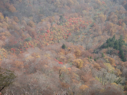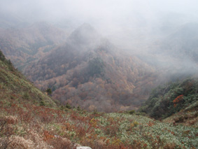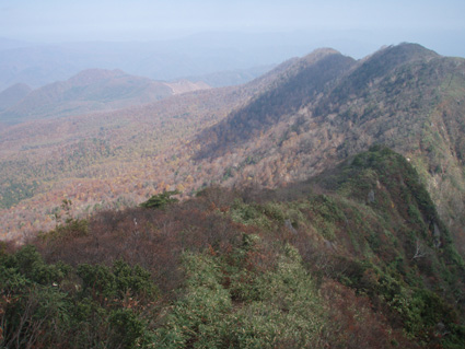 | 岩藤山の尖りと紅葉を眼下に見る → |