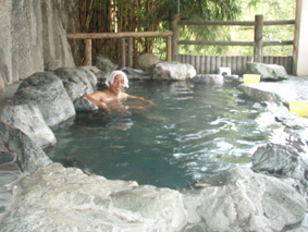 ← 帰りは温泉で! 帰路は湯野上温泉へ えびす屋さんに寄り渓流を眼下に見る露天風呂へ入る 湯温も適度で最高の贅沢の時を過ごす 庄助さんに成りつつあるSONEさん もみじの映える赤を眺めて何思う・・・(@_@) |