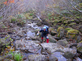 巻道も在るが沢を遡行する事にした 滑る岩は容赦なく足下をくすぐる真剣に靴底を確かめ一歩一歩登り