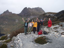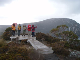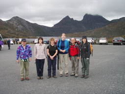 あこがれの山 クレイドル・マウンテンの登山口に立つ 案内してくれるのは Georgina さんと