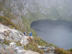 下山は休憩もそこそこに一気に下る Rough & Steep の急斜面を下るとDove Lake の辺に出た