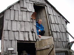 昼食を露天で取るはずでしたが小屋に入り食事を頂く (外の雨は降り続く)