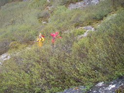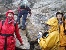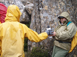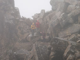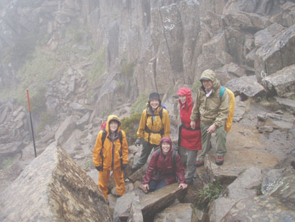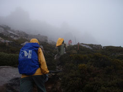 進むほどに視界が悪くなり雨足が強くなってきた為 (山頂は目の前だが) リーダーのBronteと相談して撤退を決めた