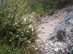 この山に残っているのは私達だけのようだ 沢の水量も増し登山道は泥んで居ました