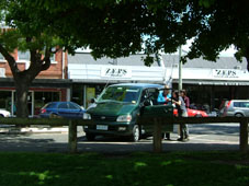 街に入ると混雑する道路 瞬時の判断で車を操るBronteの運転で予定時間の1時30分に車は滑り込みました