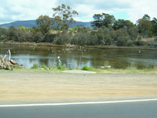 ホバート市内に近づくと街並みや住宅街が目に飛び込んでくる 近くを流れる川では水鳥が遊び