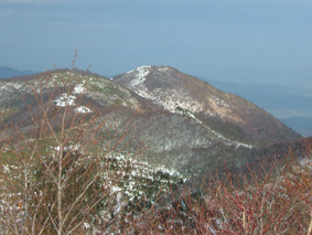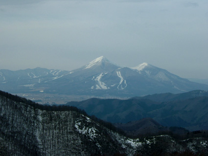 中央のピークが大将旗山〜右端のピークは額取山(別名・・安積山)