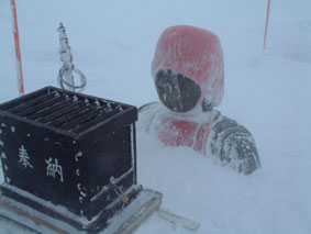 ゴンドラも寒そう 地蔵さんが埋もれていた