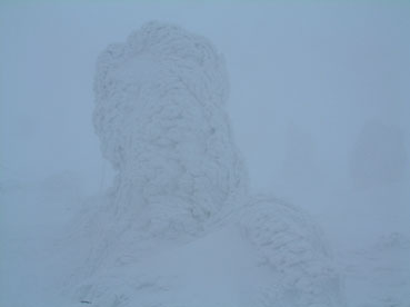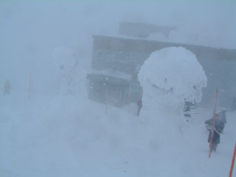 山頂は強風とガスで視界が悪いが!! 途中の樹氷は見事でした。
