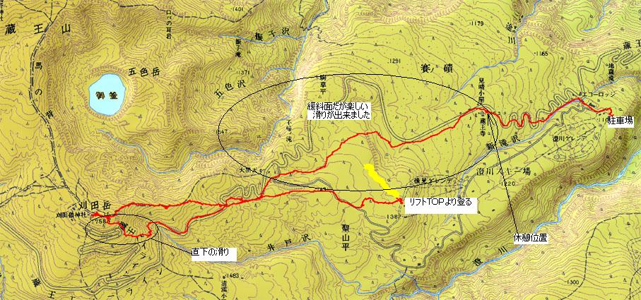 リフト終点 10:05 〜 山頂 12:00 〜 下山 〜 休憩 (13:06〜14:05) 〜 駐車場 14:30