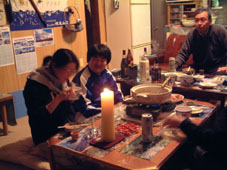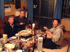 ![]() 25日 49号線より磐梯山(左奥が磐梯山〜右奥に櫛ヶ峰・手前に赤埴山) スキー場(左が猪苗代・右がミネロです) ![]() 外はポカポカ陽気であります 雪解けが進 川上の離れ屋 ![]() 現在の離れ屋の風景 ![]() 冬景色に焚き火(何とも言えない情感が) ![]() Nabeちゃんが秋元湖までスノーハイク ![]() Takaちゃんが挨拶に来た スノーブリッジ ![]() ![]() ![]() ![]() ![]() ![]() ![]() ![]() 明日の磐梯山登山の前夜祭で盛り上がる ポカポカ陽気に誘われて川上の離れ屋で磐梯山登山の前夜祭を開く 総勢10名の参加 遠くは仙台からNabeちゃんが持ちきれないほどお土産を差し入れてくれました Nabeちゃんご馳走様です 今日は参加メンバーが持参した飲み物と食材でテーブルが溢れんばかり 太い自家製ローソクはNebeちゃんの力作 明日の天候が心配と話していたのは盛り上がる前の数時間 飲み始めてTensionが上がると明日の天気はどうにでも??楽しい談義に終始した 明日の登山はどうなるものか (^O^) 何時寝たかも解らなくお休みなさい・・・・飲み疲れました・・・SEI 戻 る |