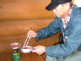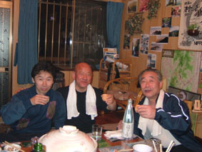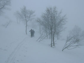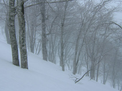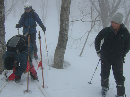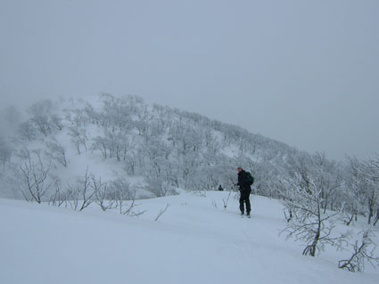 白い悪魔と妖精が住むブナ林 ![]() シールを付けるメンバー Nabeちゃんを先頭に小さく・・・・ ![]() 間もなく山頂(ふり向くTabeiさん) ![]() こんな景色が何とも言えない心に(大好きな夢の世界に導いてくれる) ![]() 山頂よりアルツスキー場方面の稜線 Nabeちゃんが一休み ![]() 山頂にて(Tabeiさん・Nabeちゃん・ごんちゃん・SEI) ![]() 目立ちがりやのブナの木と共に ![]() 雄国沼(右中央の黒は雄国休憩舎) 雄国山の稜線(稜線の黒い点々は登山者です?) ![]() 雄国休憩舎 早速に宴会の準備(ビールで乾杯 & Nabeちゃんの手料理) お腹もたらふく そろそろ出んべやと小屋を後にした ![]() 小屋を出て間もなくアクシデント( ビンディングが壊れた) 針金で応急措置 前夜祭は高橋さんの名物蕎麦で ↓ 夜遅くまで飲みました ![]() ![]() お月様と乾杯 ![]() ![]() ![]() ![]() ![]() 前夜祭でくつろぐメンバー 今週も日曜日は曇り後雨の予報 土曜日の天気を一日ずらそうと意気込み前夜祭 仙台のNabeちゃん Takaさん 東京からTabeiさん 地元組4名が小屋に集合 持ち寄ったご馳走はご覧の通り ごんぞうさんの鍋料理が加わり宴は最高潮 第一段の予行演習が終了した 第二段はTakaさんの手打ち蕎麦 うあ〜〜なんだこの味は この蕎麦の歯ごたえと香ばしさ うめ〜 うめ〜と皆さんが連呼 たれも何も付けずに皆さんが喉ちんこの奥へ奥へと送り込む つなぎを使わない?十割蕎麦 思い出しただけで喉がうなる よだれが(^O^)舌触りを思いだします 胃袋の隙間が無いくらい飲み食い 我を見失い寝床に入る 目覚めの一番はNabeちゃん カチャカチャと台所で音がする 早起きで昨日の宴の後かたづけ 皆さんが起きる頃 テーブルの上は綺麗にお掃除完了 Nabeちゃん有り難うございました Takaさんは所用で帰る 地元組のZenちゃん Yu〜kariちゃんは留守番 私達4名は雄子沢登山口に車をデポ 猫摩スキー場から山頂をめざす 雨は降らないがガスが空間を埋める風景 ぼんやりとおとぎの世界へ吸い込まれる 視線はゆらゆらと動く画面に替わり ! 木々をゆらす Nabeちゃんを先頭に登ること40分 山頂に到着 時折ガスが薄くなり稜線が見え隠れ 磐梯山の中腹やアルツ磐梯のゲレンデを見ることが出来た お昼までに小屋に入ろうと滑降開始 ピークを巻ながら雄国沼へ滑り込んだ 沼の堰堤に黒い水鳥がピョコピョコと歩いている 立ち止まりふり向く愛嬌の良い水鳥さんです 私達が数歩前に行くと同じように前にピョコピョコ 写真を撮ろうとカメラを取り出すと そこまでお付き合いは出来ませんよと お尻を振る仕草をお土産に飛び立ちました 飛び立つと地を歩く小さな姿は何処に 50cmはあろう大きな体に おまけに黒い体は白い羽を持つ鳥へ変身 優雅な舞を披露する沼の妖精?でした 小屋に着きお決まりの宴会が始まりました 天候次第で雄国山頂経由ラビスパ着の予定! ほんのりと体が火照る このままゆっくり休みたいな〜 外を見ると雪が降り出しガスで視界がどんどん悪くなってくる これ幸と山頂経由は中止ですねと リーダーのNabeちゃんに打診 一つ返事でOK 大休憩に成りました そろそろ出んべや〜の合図で小屋を後にした 此処でアクシデントが発生 Nabeちゃんのビンディングが壊れた 応急措置の針金巻&ガムテープ補強で 駐車場に無事に戻りました 楽しい二日間 皆さん 水鳥さん 有り難うございます・・・SEI 戻 る |