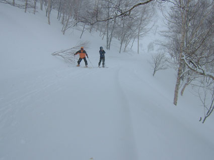 ![]() 栂池のメーン通り カントリージョー ![]() 明日の登山口の下見にゲレンデTOPへ ![]() 登山口の取り付き風景 ![]() 林道を登る ゲレンデの洋館 ![]() ご機嫌のKさん ![]() Kさん ごんちゃん ![]() SEI・GONちゃん・奥様・ご主人・Kさん ![]() ![]() ![]() ![]() ![]() ![]() ![]() ![]() カントリージョーの食卓(美味しい料理に満足満足でした) 2005年2月 乗鞍岳 途中撤退のリベンジへ栂池に訪れました 去年お世話になった宿 カントリージョーへ今回もお泊まりです 愛嬌の良い奥様 優しいご主人に囲まれて楽しい食事の一時が最高です 到着早々ゲレンデに躍り出た 雪質は最高でサラサラの小さな粉が板を走らせる TOPより林間に入り粉試し 岳樺の間を気持ちよく下る 突風が思い出したように襲って来るゲレンデ 雪が舞上がり一瞬消える視界 北の山はまだまだ冬まっ盛り 新緑はしばらく先なのか木々の間を飛び交う小さな鳥が元気に越冬を楽しんでいた ゲレンデを数本滑り宿に戻る お昼はカントリージョーの名物カレー 独特のこくのあるまろやかな味 お供にナンをちぎりカレーを付けてパクリとほおばる 名物に旨いものありが証明された 二日目の夕食は和風の「あっさり君」鍋で 鍋には日本酒とKさんの提案で一本頂く 地酒が夕食の宴に仲間入り賑やかな時間が夜遅くまで続きました 乗鞍滑降リベンジへ・・・・白い大地を滑りまくる姿が幻のように浮かぶのを確認できたのか 寝息が何処ともなく響き安心の寝言が聞こえてきそうな北の夜でした。 お休みなさい 戻 る |