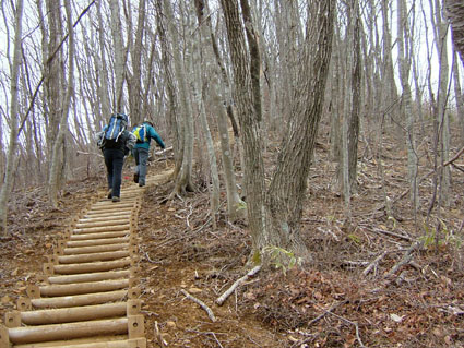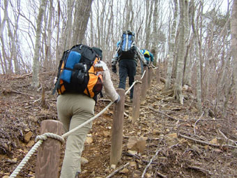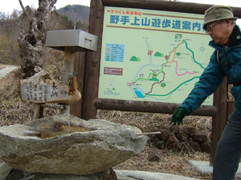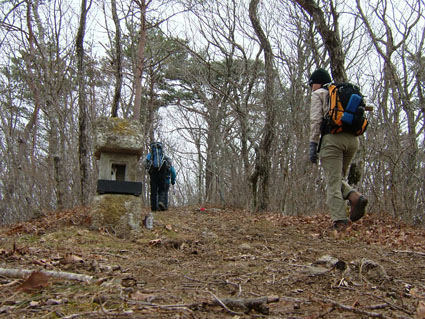 ![]() 野手上山 ![]() 鳥居にて(ARIさん ごんちゃん SUMIさん SEI) 清水 ![]() 登山口の階段 杉林の中を登る ![]() 落石注意 急坂の階段(見た目より勾配が) ![]() 浮き石が多い登山道 途中の石碑 ダムを確認 秋に季節が戻りそうな落ち葉の道 ![]() 登山道の祠 山頂の神社 ![]() 山頂の展望台 山頂広場 ![]() お待ちかねの宴会(幹事のSUMIさんが贅沢メニュー) ![]() 下 山 ![]() ダム湖 ![]() どぶろく茶屋(どぶちえ) 茶屋の中 ![]() ![]() どぶろく どぶろく名人(どぶちえさんとARIさん) 游山の企画する月一回の例会登山 今月は飯舘村にある野手上山628.5mである 春風の吹く暖かい日和 いよいよ登山の季節が到来した 鳥居のある登山口より登り始めると心地よい風が頬を撫で通り過ぎ さわさわと木々が揺れる音に合わせるかのようにウグイスの鳴き声が響き渡る ”ホーホケキョ” 新緑に染められる山肌はすぐ其処まで来てるのが感じられた 雑木林の急登が続く 30分位登ると風格のある石碑がお目見えした 此処で汗を拭い一休み あまり早く歩くと山頂に着いてしまうと道草の登山道歩きでした 落葉樹の木々の隙間からダムが見え 下界には数件の民家も確認できる 自然豊かな飯舘村の一角にある うつくしま百名山の名峰が此処に鎮座する姿が在りました。 山頂では幹事のSUMIさんが名コックの腕を披露してくれる 野菜や大きなエビを使った天ぷらが次々と揚がる デザート&飲み物で2時間の宴会は 山頂での最高滞在記録かSUMIさんの次回幹事が楽しみである 下山はケヤキの森コースを下る 緩斜面の程良い歩きが親しまれる由縁か低山ながら登山者数十名と会う 大自然の中に親しまれる山・・・・・・・・だが・・・・残念なのは 山頂に残された多くのゴミの堆積 ダム側にある登山口の斜面のゴミの山 何故と心が痛みました 帰りはテレビ&新聞でも報道された どぶろくの味「きまぐれ茶屋」に寄り道する 予約が必要と言われたが優しく応対してくれたどぶちえさん 田舎の雰囲気が醸し出された作りとどぶろくの味は最高でした (予約電話 0244−42−1303) 幹事のSUMIさん ARIさん ごんちゃん 楽しい一日でした ・・・・SEI・・・・ 戻 る |