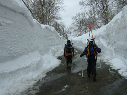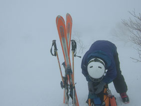 ![]() 栗駒山の遠望(移動中の車より) ![]() いこいの村駐車場 雪の回路を行く ![]() 最初の急登の斜面 振り返る下界(いこいの村) ![]() 未だ余裕のお二人山? いわかがみ平の?小屋 ![]() 道路は雪の下 ![]() いわかがみ平にて(ごんちゃん SEI カボスさん) ![]() 切れ落ちた壁 眺める ん〜〜〜怖い ![]() ガスで視界が5〜10m 次第に疲れが 地図を読むカボスさん ![]() ![]() ![]() 1386mの撤退位置(下山の準備) ![]() 途中の模様 山中に鳩が(心配してくれてありがとう) 寝てる場合でねえよ!! ![]() ポーズが決まってるカボスさん ![]() お昼のランチ(これはほんの一部)雑炊が美味しい・・・・複雑な味と酷評も (>_<) ![]() ブナ林を滑り無事に下山 週末になると崩れる天候 今日も東北地方は雨の予報が 予報が外れることを願い栗駒山に来ました 移動中の車からは山頂が見える 今日は予報は外れるかも??だが・・・・・ガスに包まれた栗駒山 山頂を踏むことが出来なかった いこいの村に車を止めて駐車場の施設に登山届けを提出する AM7:40閉められたゲートの上部より道路に下りて雪の回路を進 ブナ林が見事な斜面 まだ視界は良好だ 大きく右に曲がるコーナーより道から外れて斜面を登ることにした 前日と思われる登山者の足跡が一つ 爪の跡からしてスノーシューで登られた様だ 最初の内は適度に固められた跡が歩きやすく ありがたいものである だんだん斜度が増す振り返り下を見ると うへ〜 滑落すると何処まで落ちるのだ表面の硬さからして途中には止まらないだろう! 斜面の上部に達する頃はクラストしてる為に足場が作れない 二度三度と靴の先端で蹴りを入れて足場を作る 結構疲れが感じられる斜度の登りに成りました。 数回雪の下になってる道路を横切ると いわかがみ平に着いた駐車場は数メートルの雪の下 おまけにこの頃からガスで視界が殆ど無くなる 小屋の脇で休憩をとった後5〜10メートル視界の中を山頂に向かう 夏のコースと思われる空間を進むと森林限界か木々の姿が消えた 斜度が確認できず平らに見える登りが実は斜度がある そんな登りを繰り返す 微かに木々が確認できる斜面もある GPSでコースを確認する為に画面を見ると何とトラックが無いではないか 途中までは綺麗に残るトラックが何故消えてるのか? 今までも時々ある現象でした・・・・・・GPSの過信は禁物 地図にコンパスを忘れずに! 標高差が山頂まで240mを残し1387m位置にて撤退をすることにした ガスが去れば素晴らしい景色が映し出されるだろうと想像の空間に別れを惜しみ下山となる 適度な斜度に手探りの滑降 5mも離れれば姿が確認できなくなる かけ声をかけながらの滑降に楽しさを見いだす 右に左に滑る 小さな木々に邪魔をされスキーにブレーキが係る 膨らみかける新芽を板で傷つけてしまった ご免なさい悪いのは下手なスキーの為で私に悪戯はないと反省の滑りでした いわかがみ平を巻 道路の左にコースを取る 標高1150mより下はブナの巨木も見られ林間滑りが楽しめる 新湯沢に入り込まないように右にコースを取り気持ちの良い下りが続く 950m位からは雪が腐り重い 思うようにスキーが走らず大回転(転倒)そのまま大の字になり横たわるSEIでした 840mいこいの村駐車場に到着 時間はAM11:40お腹の空き頃がお昼時とランチタイム 駐車場の東屋に潜り込み(半分雪で埋まって居た)しとしとと降り出した雨宿りを兼ねた スクリーンを見てるように霞むブナ林 幻想的に漂う動きを感じ食事をする一時は 雨もこれ良しと途中撤退の厳しい現実を和らげてくれました 山頂を踏めなかった栗駒山 また来ますと山に向かい唱える クラストした急斜面 視界不良の雪原 山腹のハトさん 雪に埋もれた木々に傷つけた事を詫び 思い出深い栗駒山にありがとう そしてカボスさん ごんちゃん ありがとう ・・・・SEI・・・・ 戻 る |